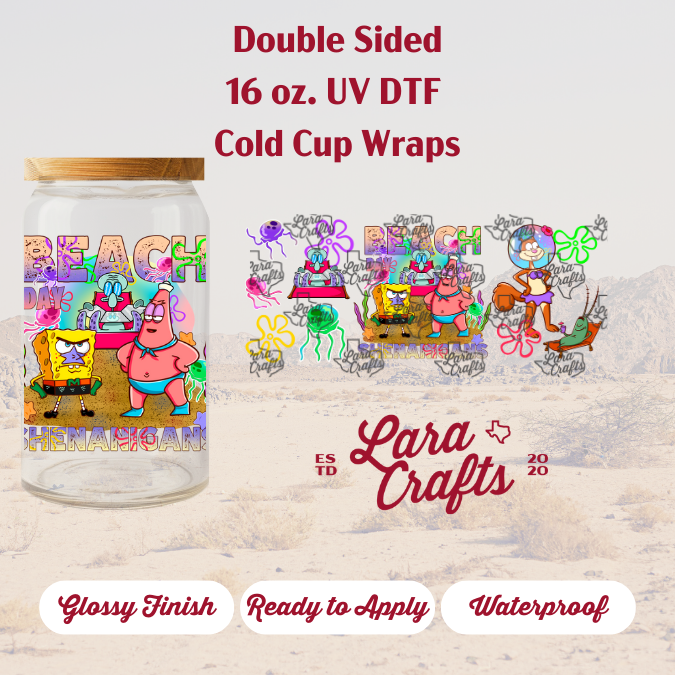 Not all 16oz glass cans are identical in size. Our wraps are specifically designed to fit 16 oz Libbey glass cans. Please double-check your cup’s measurements before purchasing. We’re unable to replace or refund wraps due to sizing or application errors.