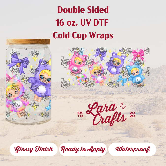 Upgrade your glassware with our high-quality UV-DTF wraps, professionally printed in-house for a vibrant, glossy finish. These wraps are waterproof, permanent, and easy to apply! Just peel, stick, press, and peel away the transfer film. No heat press or special tools needed!
