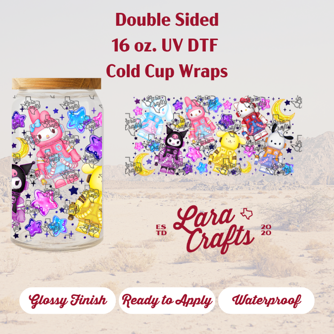 Upgrade your glassware with our high-quality UV-DTF wraps, professionally printed in-house for a vibrant, glossy finish. These wraps are waterproof, permanent, and easy to apply! Just peel, stick, press, and peel away the transfer film. No heat press or special tools needed!